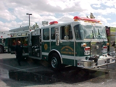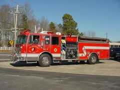 This Engine has an 8 man cab, Detroit 60 Series 400 HP engine, Allison transmission, 1750 GPM Hale single stage pump, and 750 gallon tank. It also carries an in-line foam system, 75 KW generator, an electric Hurst pump with an assortment of Hurst hydraulic tools, hydraulic ladder rack, 100 feet of air line on a reel, On-Spot chains, and a 3000 watt Nightvision Command light tower. It is AED equipped. It also carries 1000 feet of 5 inch supply hose. This truck was white/kelly green when purchased from Lower Providence Township in PA.