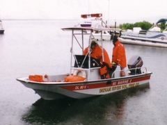 80 Marine Unit #2 has a 90 HP Johnson outboard motor, folding backboard, 15 mile Radar, and GPS navigation equipment. It is AED equipped.